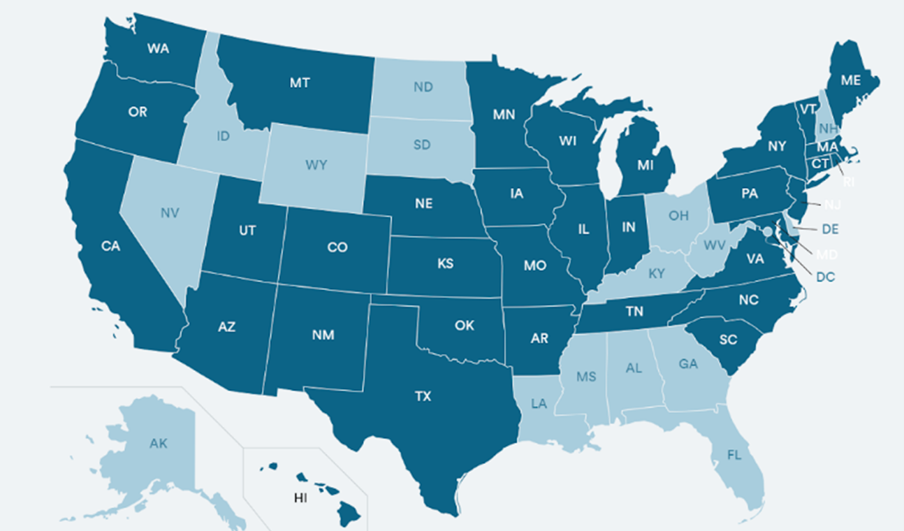 Note. Dark blue = legislation introduced. Only five states have concrete legislation passed.